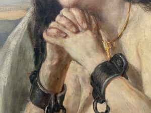 Te obrazy nie dają nadziei, ale nadzieję na przyszłość daje ostatni obraz kolekcji – symboliczna „Polonia” – skuta kajdanami, ale…