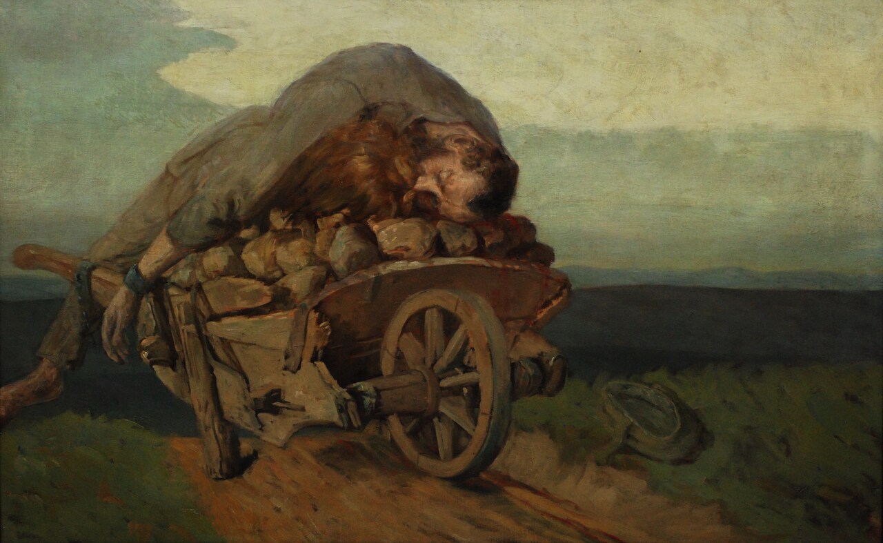 Taki tytuł nosi obraz Aleksandra Sochaczewskiego i przedstawia mężczyznę leżącego bezwładnie na drewnianej taczce, załadowanej kamieniami. Postać mężczyzny leży bezwładnie – bez życia, z głową opuszczoną na bok i rękami zwisającymi na ziemię.